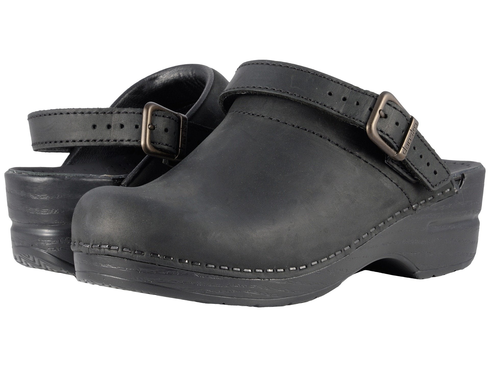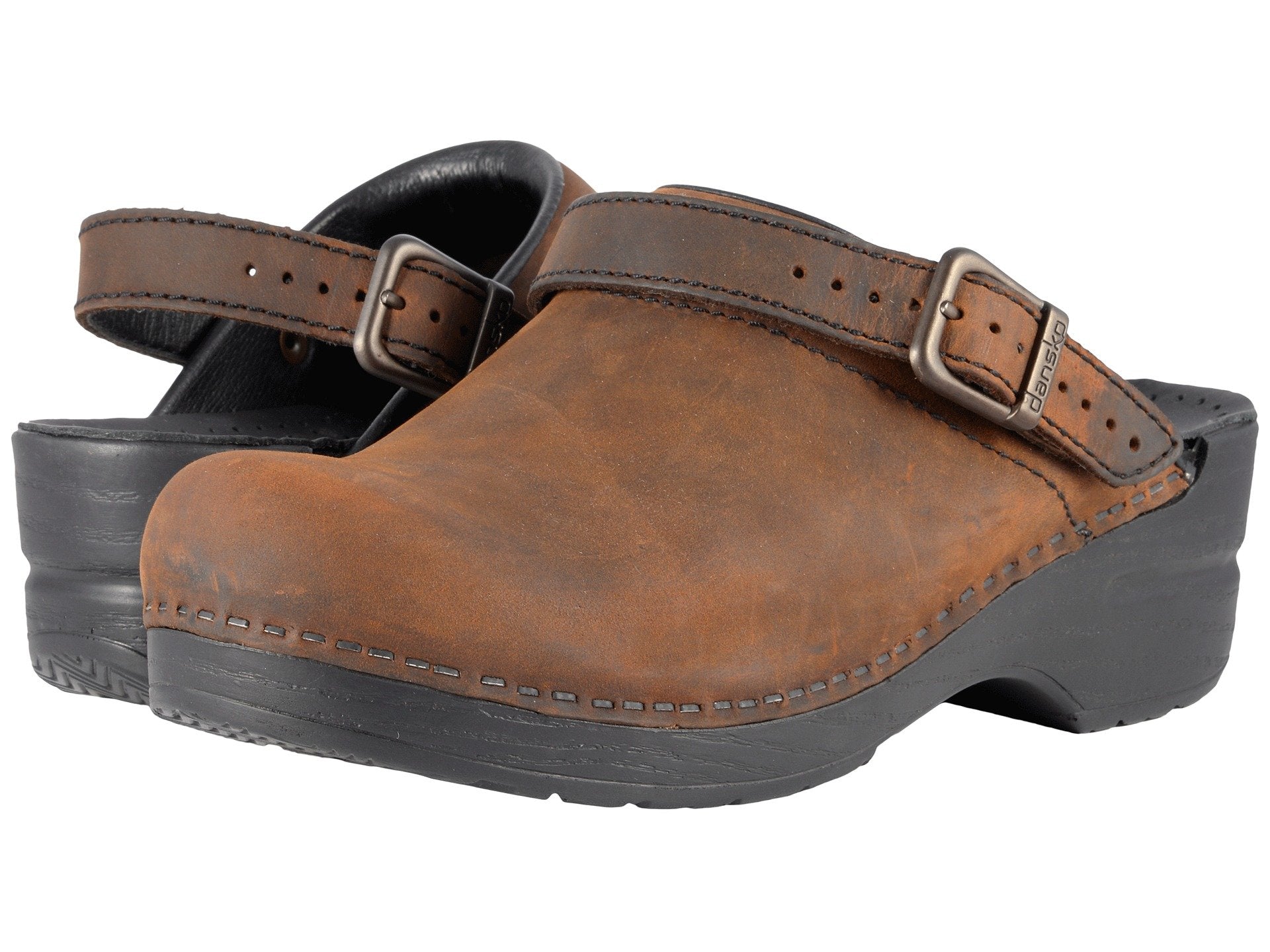 You may be more comfortable sizing downward for open-back models (for example, if you are a US size 6.5, you may want to choose EU size 36). Dansko's most traditional open-back style with an adjustable buckle strap that still takes on the critical role of providing comfort to those in the nursing, hospitality and other occupational fields. Your heel should be either even with or slightly forward of the back of the clog and your toes should not hit the front of the clog. High quality leather upper follows the natural contours of the foot. This is a heavily oiled, matte-finish leather with optimal pliability and moisture resistance. Nonallergenic vegetable tanned leather sockliner wrapped around synthetic foam absorbs and evaporates perspiration. Fully convertible heel strap allows wear behind the back of heel or across instep, your choice! Roomy Thermoplastic toe box provides durable reinforcement and toe protection while allowing toes to move comfortably. Protective Polyethylene heel counter allows the heel to move up and down when walking. Also provides lateral stability and acts as a natural shoe horn. PVC inner frame provides stability and reduces torque and pronation. Polyurethane outsole provides shock absorption and flexibility. Rocker bottom propels the foot forward when walking. Carries the Seal of Acceptance from the American Podiatric Medical Association. Imported. Product measurements were taken using size 41 (US Women's 10.5-11), width Regular. Please note that measurements may vary by size. Weight of footwear is based on a single item, not a pair. Measurements: